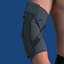 The Thermoskin Hinged Elbow is designed to prevent hyperextension of the elbow. X-cross hook and loop locking straps help restrict range of motion. Medial and lateral hinges provide a hyperextension stop at 0 degrees.- Designed to prevent hyperextension of the elbow